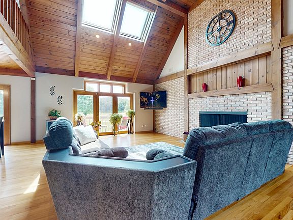 Traveling back through the rolling hills of Lakewood, you'll wind through the highly sought after Turnberry neighborhood. Nestled back on the 13th hole of the Turnberry Golf Course sits 7312 Inverway Drive. Walking through the front door of this 4 bedroom, 3.1 bath home you will see the hardwood flooring, vaulted and cathedral ceilings, post and beam construction, but what really sticks out is the feeling of warmth -it is undeniable. The home has updated kitchen granite countertops, custom cherry cabinetry, 5 burner cooktop and double oven with warming drawer. When food prep is done and the meal is ready, you can easily bring the party outdoors through either set of doors which leads to a multi-tiered deck that overlooks the expertly manicured grounds of the property and golf course. Entering back inside you'll be greeted by a massive, focal-point brick fireplace, noting these are original bricks from the city of Chicago. The main level offers a massive, open-concept area with tall vaulted ceilings, custom millwork and a large main level office. The second level offers three plus sized bedrooms and a loft which would make for a great reading nook or office. The owners-suite is ample sized with beautiful views of the outdoors and plenty of light thanks in part to the high-end windows and neutral paint palette. The bathroom suite has a double vanity with granite counters tied together nicely with the granite flooring to match the wall tile, plus a large walk-in shower, clawfoot tub and plenty of storage. The lower level walkout basement provides great flexibility with large living area with brick fireplace, oversized bedroom, full bath, game area, rec room, coffee bar and full sized cedar encased sauna. Utilizing the french doors that lead outside to the walk-out basement could be an ideal in-law arrangement or great for extended stays with guests. When you decide to leave, the three car, side load garage offers plenty of space, insulation, and extra durable epoxy flooring. Many updates have been done throughout the home such as new A/C, completely rebuilt furnace, new lighting indoors and out, window seals, faucets, plus much more. This home has been lovingly maintained and the owners hate to leave. Important updates: brand new irrigation system 2023, new roof and gutters with leaf guard protection 2024, new skylights with solar powered shades 2024, living room and bedroom powdered shades 2022, Culligan water softener system with reverse osmosis water system 2023, new multi-colored landscape lighting 2023, upgraded landscaping and added commercial grade fabric installed in all flower beds 2024.