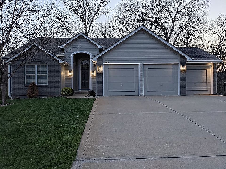 Wonderful true ranch home with 4 bedrooms, 3 full bathrooms, 3 car garage, fireplace, and backs up to wooded green space. Full basement safe room under 3-car suspended garage with metal security door, central vacuum system, second kitchen downstairs in very large tiled family room, bedroom & full bath in basement, Google fiber. New AC (Nov 2021), new furnace (Nov 2020), completely new master bathroom Apr 2021, guest bathroom remodel Mar 2021, updated laundry room, new carpet May 2020. New paver patio/retainage walls/flagstone path/landscaping Aug 2021. New exterior paint & lights April 2021. New SS gas range/oven, microwave, dishwasher Dec 2021.