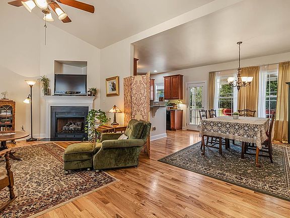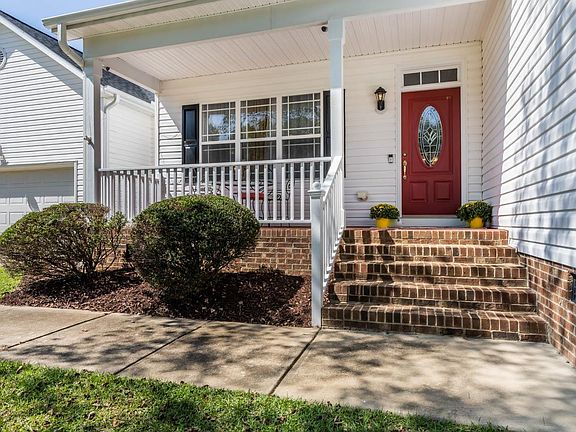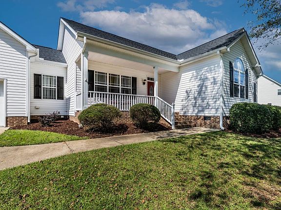 .57 ACRE, LOW TAXES, COMMUNITY POOL, UPGRADES, ONE STORY: Your serene one story home is located in the well-loved Bloomfield community. Hardwood floors in the main areas, tile in baths and laminate in the secondary bedrooms. Open concept design with vaulted ceilings and corner fireplace in the living room. The kitchen features warm wood cabinets, granite counters and an oversized double pantry with wood shelving. A separate utility room with built in cabinets is tucked away beside the garage. Your primary bedroom has a trey ceiling, double vanity, tiled shower and large walk in closet. Spacious secondary bedrooms, one with an architectural design window. The exterior of your home features a rocking chair front porch at the front of the house and screened porch and deck overlooking an expansive .57 acre fenced backyard in the rear of the property. Low county tax rates! Enjoy the community pool all summer long. Roof replaced 2017, HVAC replaced in 2019. Check out virtual tour.