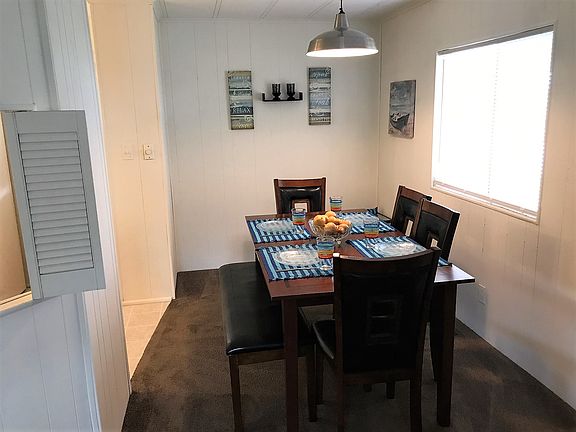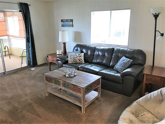 Reduced $10,995- MOTIVATED SELLER! This 2-bedroom 2-bath home is Turnkey and located near Harmony Hall and Pool. Nice kitchen with tile back splash, white cabinets and white appliances. The living and dining room are open and cozy. The sliding glass doors in the living room lead you out onto the nice enclosed/screened lanai with air conditioning. It's a perfect area for entertaining your guests. Spacious guest bedroom with built in dresser and storage. Guest bathroom is a tub shower combo with storage under the vanity. Huge master suite with large walk in closet. Master bathroom has a step-in shower. Washer and dryer are in the large outside shed. The shed is large enough to store all your beach gear, holiday decorations and more. The home has a new breaker box. Metal coating roof redone in 2019. ACT FAST & CALL TODAY!! Don't forget to ask about the FINANCING available on this home. Colony Cove is an age qualified (55+) five-star resort community of manufactured / mobile homes. The "Cove" boasts 5 clubhouses, 5 heated pools, a riverfront pavilion and private fishing pier, a private marina, a fenced dog park (very pet friendly), tennis, shuffleboard, new pickleball courts, 2 new fitness rooms, 24-hour patrol, clubs for every interest, and much more. There are daily planned activities throughout the park. Bottom line, if you get bored here, it's your own fault!! The lot rent in Colony Cove is based on the homes' location. While the monthly rent may not be the lowest around, it's by far the best value for the money. Not only does the monthly rent cover all of the amenities of the community listed above, it also covers almost all other monthly expenses such as; water, sewer, trash pickup, all property taxes, lawn maintenance. . .pretty much every monthly expense except electricity and internet. The current lot rent on this home is estimated at per $888.66 month.