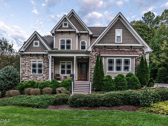 Rare opportunity to own an elegant well maintained ready to move in custom built home with 3 car garage on 1.34 acres in one of the nicest neighborhoods of Raleigh. Huge flat driveway with 3 car garage space with the 3rd garage temperature controlled and has a dedicated 100 amp subpanel. Relax on the font porch looking over the expansive landscaped front yard. Private backyard with a huge deck, screened porch and upper deck overlooking the garden, paver patio complete w/seating and firepit. This open floorplan offers a Primary ensuite on 1st floor with sealed shower, and spacious walk-in closet. The main floor features 10 foot ceilings, 8 foot doors. crown molding, custom details. The family room offers built-ins and a stacked stone fireplace, seamlessly flowing into the light filled gourmet kitchen complete with granite countertops, a new Bosch gas cooktop, Bosch stainless steel appliances, a wine cooler, and an large island. A vaulted morning room opens to a screened porch, creating a seamless indoor-outdoor living experience. Main floor flex space with coffered ceiling, perfect for an office, library or formal dining room. Upstairs, you'll find six additional rooms; Three additional bedrooms, one with its own ensuite and the other two sharing a Jack-and-Jill bathroom with individual vanity areas. Every bedroom includes a walk-in closet, ensuring ample storage for all. A loft-style room with hardwood floors and custom built-ins is ideal as a game or keeping room. A spacious BONUS ROOM, featuring a deep walk-in closet and French doors leading to another private balcony provides even more versatile living space. A fitness room fully equipped! There's a side load 2 car garage and a separate 3rd CAR GARAGE that is temperature controlled, has it's own 100 AMP subpanel, tall ceilings, she shed ready or mancave, whatever a new owner desires! The perfect blend of luxury, comfort, and functionality for everyone. Additional highlights include a conditioned sealed crawl space, a tankless water heater, whole-house filtration system with a large reservoir tank, and a third-floor walk-up attic for storage or future expansion. **The property's meticulously maintained grounds feature a whimsical arched bridge adorned with fairy lights, a paver patio complete with seating and a firepit, there's a fenced vegetable garden, covered front porch, large deck, rooftop deck/balcony and a screened in porch. ** The yard extends beyond the manicured landscape, past the evergreen trees into the tranquil woods, offering the perfect balance of elegance and nature. Just minutes from major conveniences like Groceries, I-540, RTP, RDU Airport, Zinchouse Win Energy savings Rinnai tankless water heater Conditioned sealed crawl space Whole-house filtration system The welcoming Highland Forest neighborhood has low turnover, an inviting atmosphere, and a modest annual HOA fee. Lovingly maintained by its original owner, this home is a testament to quality and care.