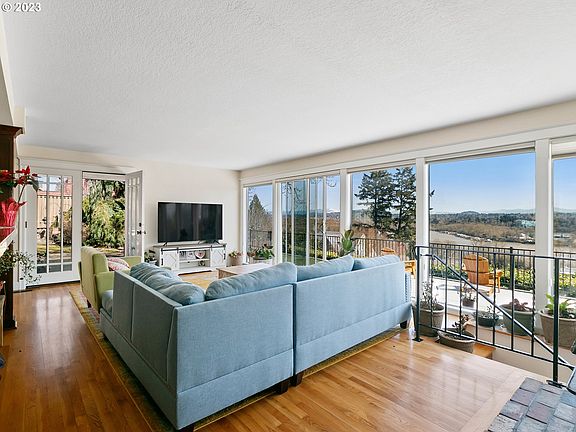 BIG TIME VIEWS! River, Oaks Park, Mt Hood! 2015 sq ft remodeled home with open floor plan. Property is on 2 tax lots. Views from kitchen, eating area and living room! 3BR/2Bth. Beautiful kitchen w/ skylights & cherry cabinetry. Great patio spaces! The photos say it all! Lower level has a bathroom & a 16x14 bedroom/office/bonus room (baseboard heat) with an outside door & slider to the backyard (no photo). The 800 sq ft garage with sliding door, cabinets & electric panel; holds 2 cars with storage rooms & areas. DO NOT DISTURB TENANTS! Possession on June 15, 2023. No open houses. Write offers subject to interior inspection and/or schedule an appointment on weekend afternoons with 24 hours notice. Survey stakes at two corners. Also for sale, RMLS #23257796, the vacant lot. [Home Energy Score = 2. HES Report at https://rpt.greenbuildingregistry.com/hes/OR10213030]