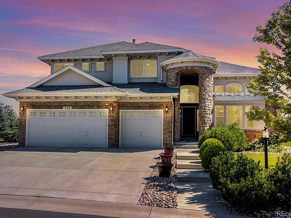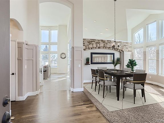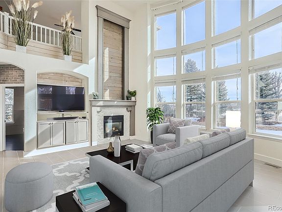 Don't miss this amazing opportunity for a quick close on this stunningly upgraded five bedroom four bath home in the highly desirable area of Saddle Rock. This open concept floor plan is lined with large windows showcasing this magnificent lot and stunning mountain views. On the upper level are the 3 large bedrooms, full bathroom and loft- ideal for an office or play room. The main level offers a kitchen with upgraded granite countertops, custom backsplash and stainless steel appliances. It overlooks a sunny eat-in dining area with large windows that give an abundance of natural light. On the main level you are going to love the spacious primary bedroom with en-suite luxury 5 piece bath and large walk in closet that have been newly upgraded and includes a jetted tub. On the main level also is the formal dining room-perfect for family gatherings, powder room and laundry room. In the family room with gas fireplace and 18' ceilings are massive windows which beautifully frame the outdoor patio with professionally done landscaping. Lower level encompasses bedroom, full bathroom as well as the wow factor rec/family/media room. Enjoy relaxing or entertaining guests in the fully finished basement where you can watch a movie on the gigantic flat screen tv in the theater room or hang out at the stylish wet bar and watch the game on the 2 mounted tv's. This gorgeous home has exceptional designer upgraded finishes and custom window treatments through out. This home is close to dining, shopping, entertainment and amenities. The impeccable taste and rich custom upgrades make this your dream home.