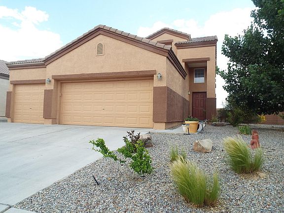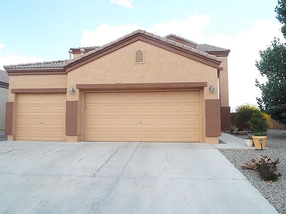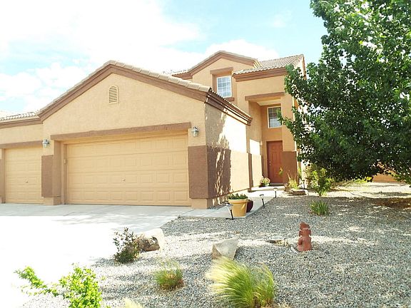 Hard to find! awesome home with 4 Bed ,3 Bath, 3 car garage in a large lot at the end of a very quite street. It backs up to a walking trail with nature all around you.Beautiful sunsets and mountain view from the front yard. Distinctive neighborhood in the Santa Fe Trails near Ventana Ranch.Walking distance to parks, Running trails, great schools and CNM college. Great Location!!! You will love this wonderful large lot & last house on the Street. Great landscape with backyard covered patio, fruit trees (apricot, pear, cherry and grape vine). Wait until you see the amazing and huge vegetable garden. Large open kitchen with an Island, spacious Master Suite with walk-in closet and a nice balcony to enjoy all the beautiful Sunsets. This home has been lovingly cared for and is move-in ready.