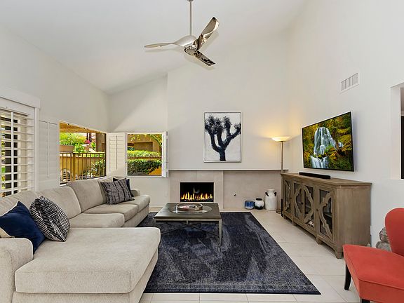 Highly desired newly remodeled 2 bedroom 2 bath condo with new kitchen cabinets, quartz counters & stainless appliances at Ironwood Country Club. Mere minutes from El Paseo shops, restaurants & golf venues. Open floor plan with vaulted ceilings, wrap around windows, fireplace, tile flooring and new carpeting complimented with new gourmet kitchen including 2 dining areas. Enjoy the oversized private patio with garden views from a private greenbelt with no other condos in sight. Enjoy the sun, BBQ and dining with mountain views in complete privacy. Live in the popular Vista Lakeside area with a pool/spa complex directly cross the street highlighted with a beautiful lake. New HVAC was installed in 2019.