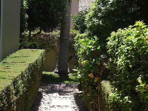 Enter this desert retreat thru beautifully manicured gardens affording the ultimate in privacy. The terraced back yard with it's mature palm trees, fruit trees, rose bushes, and desert scape has an elevated deck for sunning overlooking the dramatic pool and spa. Additionally there is a built-in barbecue and ample patio area for entertaining and al fresca dinning. The open floor paln offers 4 bedrooms and 3.5 baths including a seperate casita. This home has been tastefully decorated with custom window coverings, newly painted inside and out, and new flooring. Custom designed furnishings may be purchased separately. Monterra is a highly desired, well located, guard-gated community.