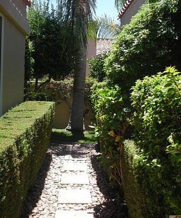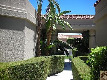 Enter this desert retreat thru beautifully manicured gardens affording the ultimate in privacy. The terraced back yard with it's mature palm trees, fruit trees, rose bushes, and desert scape has an elevated deck for sunning overlooking the dramatic pool and spa. Additionally there is a built-in barbecue and ample patio area for entertaining and al fresca dinning. The open floor paln offers 4 bedrooms and 3.5 baths including a seperate casita. This home has been tastefully decorated with custom window coverings, newly painted inside and out, and new flooring. Custom designed furnishings may be purchased separately. Monterra is a highly desired, well located, guard-gated community.