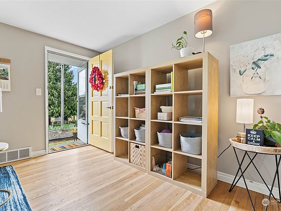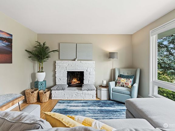 Yes... there's A/C here!!! Updated kitchen, most wiring, heat pump, hardi-plank siding. Main floor has 2 beds & full bath. Living room is spacious w/fireplace. Kitchen has plenty of elbow room + eating area & gorgeous view of fully fenced back yard. Tons of gorgeous greenery & rain barrels too! Basement has one extra finished room & plenty of opportunity to finish off the rest if desired. Detached garage is big enough for a car & storage too! Old oil tank properly decommissioned & replaced by heat pump offering cost efficient heating AND cooling. All installed appliances are included. High Point area is quaint while still giving easy access to shopping & dining. Only 7 miles to DT Seattle. 10 miles to Sea Tac! Welcome Home! Open Sat 12-2.