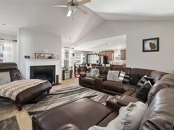 Could this be the newer home you’ve been searching for? Discover an ideal single-story residence in Chesterfield just 3years old that exudes warmth and modern charm. An inviting entryway seamlessly flows into the comfortable living room.Here, vaulted ceilings and a ceiling fan above create an airy ambiance, while the sleek fireplace provides year-roundcomfort. The neutral-toned carpet enhances the serene vibe, perfect for relaxing or entertaining. The open-concept kitchendazzles with recessed lighting, plus there’s a stylish pendant light above the sink. Wood-style flooring adds a touch ofelegance, complementing the layout that includes both a casual dining spot and a traditional window-side breakfast nook.All three bedrooms await with neutral carpeting, ensuring restful retreats. You'll have dual sinks, a separate shower, and asoaking tub in the main bath. The laundry room is conveniently tucked nearby, adding practicality to this thoughtfullydesigned floorplan. Dual-pane windows throughout flood every room with natural light. Venture outside to your backyardhaven under the covered porch. Experience leisurely mornings with coffee or evenings under the stars. Beyond, thepartially fenced yard is lush with grass, offering an enjoyable space to play or have summer BBQs. This meticulouslymaintained abode is ready to be your forever home!