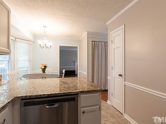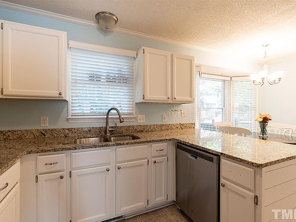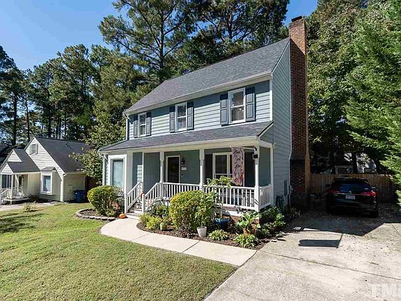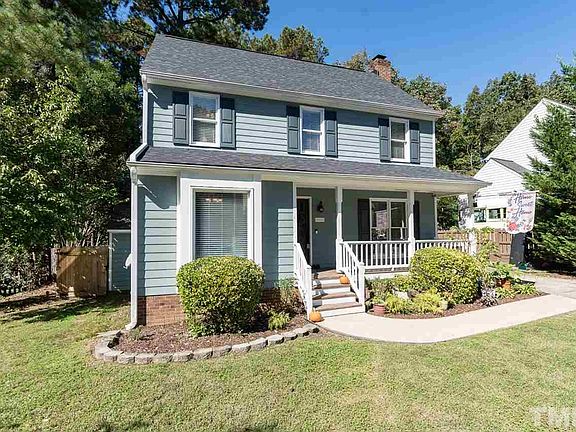 Quaint 3 bedroom, 2.5 bathroom home in North Raleigh! Vinyl flooring flows throughout most of main level of the home. The spacious living room features a wood burning fireplace with access to the formal dining room. A spacious kitchen offers a plethora of cabinet space, granite countertops, pantry and connects to a sunny breakfast nook. The master bedrooms has a spa-like en-suite with large walk-in closet. Great storage shed located in the back. Prime location with convenient access to I-540 and US-1!