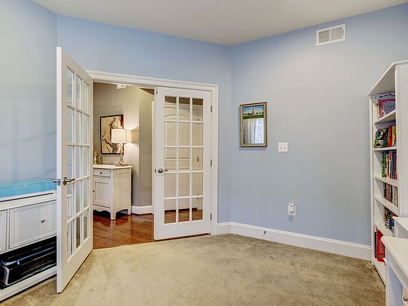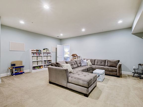 Pristine brick front Colonial boasts luxurious upgrades including crown molding, chair railing, a lower level full bath, and a stone patio providing the utmost in comfort and style. A sun filled foyer leads you to the den through glass French doors and to the gracious recreation room with recessed lighting and plush carpet. A large bedroom and full bath with marble detail and granite vanity complete the entry level. The open concept main level showcases a seamless hardwood floor, an elegant living and dining area with crown molding, chair railing and plantation shutters. Dual French doors and transom windows bathe the main living area that includes an inviting family room, breakfast room and chefs kitchen featuring an oversized island breakfast bar with double sink and pendant lighting, antique white 42 inch cabinetry, stainless appliances that include wall ovens and a gas cooktop. The spacious owners suite provides 2 walk in closets, crown molding and a luxury bath with granite dual vanity and glass enclosed shower with two shower heads, built in seating and mosaic glass and tile detail. Two bedrooms, a full bath and a convenient laundry room complete the upper level sleeping quarters. Entertain outdoors in the privacy fenced backyard with a custom stone patio and play area that leads to the 2 car garage with built in storage. Enjoy the extensive list of what Maple Lawn has to offer: A community center, pool, acres of park space, fitness center, playgrounds; tennis and basketball courts. Don~t miss the spectacular home!