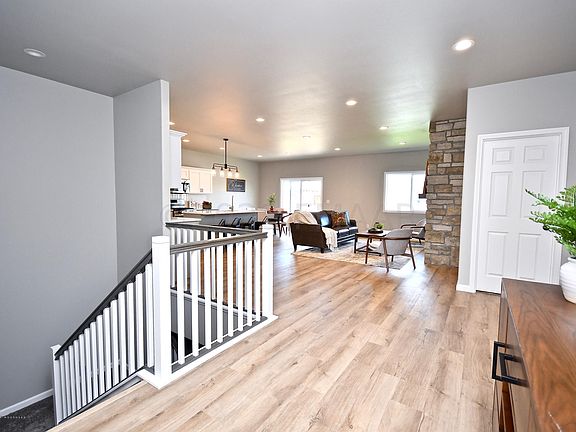 Rosestone Rambler ( 4 bed, 3 bath, 2 stall) MODEL. GO SHOW/ Quick close. Fully finished, patio, sod,sprinklers, floor drain, gas range, gas fireplace with feature wall, stainless appliances, quartz countertops, backsplash, open railing, walk in tile shower with glass shower door, upgraded carpet and pad
