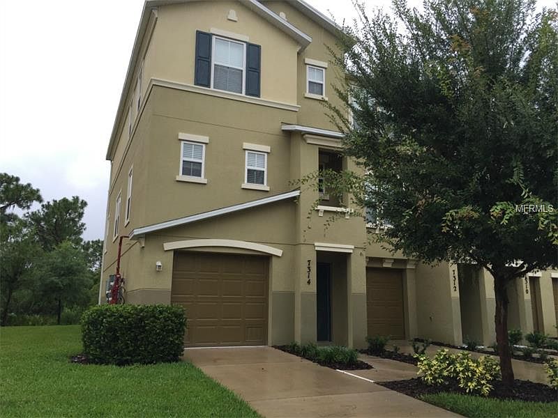 2009 model 3 bedroom 2.5 bath end unit Townhome. No CDD and low maintenance fees. This beautiful end unit sits at the very back of the community with lovely views of the pond from the balconies and an expansive back yard. The beautiful kitchen features wood cabinets with stainless appliances including a new quiet run dishwasher. The second floor features a spacious living room with a balcony with water view, dining room and kitchen. The third floor features a master suite with large closets and a balcony where you can relax and enjoy the view. There are 2 additional bedrooms and full bath as well as a laundry room. Owner is relocating and the unit will be available for occupancy September 1.