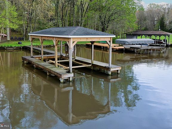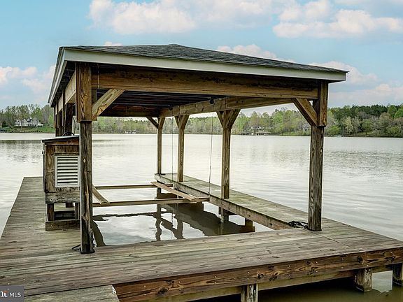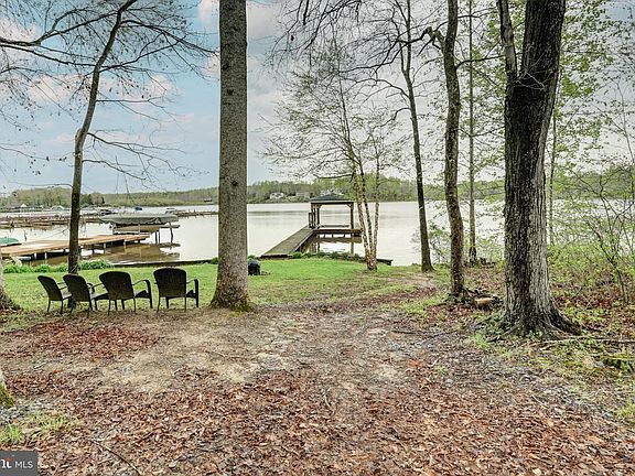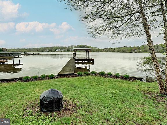 Welcome to your perfect lakefront escape on the public side of Lake Anna, VA. This charming A-frame cottage offers the ideal setting for relaxing getaways or full-time lake living. Featuring 1,715 finished square feet, the home includes 3 bedrooms, 2 full baths, plus a versatile bunk room in the finished basement. The main level showcases an open floor plan with hardwood flooring, an eat-in kitchen, and a vaulted family room filled with natural light. A bedroom, full bath, and mudroom complete the main level. Upstairs, you'll find two additional bedrooms and a full bath. Downstairs, the finished basement offers extra space to spread out, with a rec/family room, bunk room, and laundry area. Step outside to a covered wrap-around porch and spacious rear deck—ideal for BBQs and outdoor entertaining. Gather around the fire pit on cool evenings or head down the wooded path by foot or ATV to your private waterfront oasis. Enjoy 30 feet of bulkheaded shoreline and your own covered boat dock equipped with a generator-powered lift. Whether you're watching sunsets with a cocktail in hand, taking a boat ride or a peaceful paddle, this is lake life at its best. Additional features include a paved driveway, an 8x10 storage shed, and a 24x30 detached garage with high bay doors—perfect for storing your boat, lake toys, or vehicles. Recent upgrades include a new water heater (2022) and a new Trane HVAC system for the upper level (August 2024).