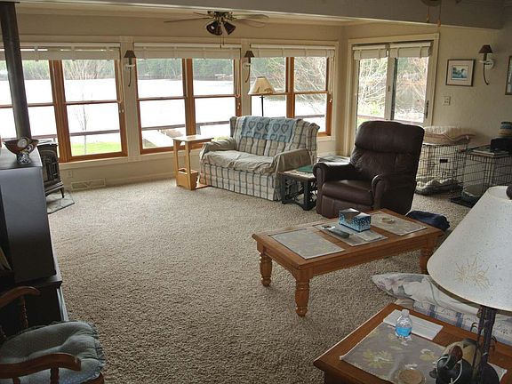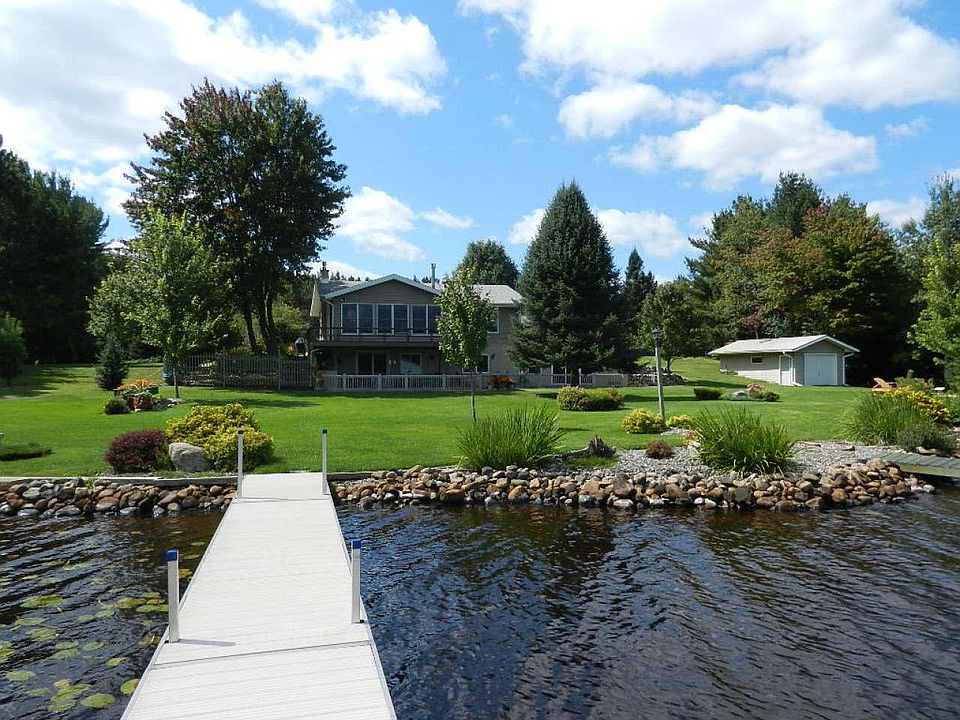 This 3 bedroom home is super spacious and offers 2 fully finished levels, 2 fireplaces, large family room with a wall of lakeside windows, walk-out lower level, rec room with another full kitchen/bar area (could be used as a mother-in-law suite), concrete patio, boathouse and a large heated garage. Add to that a wine cellar, lawn watering system, AC, outdoor fire pit, newer roof, black topped driveway and its convenient location across from the bike/snowmobile trail and close proximity to both Three Lakes and Eagle River. PLUS the gorgeous lot is very nicely landscaped and offers 190 ft of level frontage on the Three Lakes Chain! This property is THE complete package and is move-in ready! The property is also zoned for commercial use so you can work where you live (if you absolutely have too)!!!