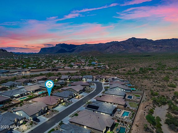 ** P A R A D I S E ** Amazing opportunity to own a 2019 Braeloch in Peralta Canyon w/ breathtaking mountain views! Stunning HEATED PRIVATE POOL & SPA w/ all the upgrades! $40k in upgrades! This floor plan is VERY versatile. Flex space. Owner's suite. 2 bedrooms + flex room + full bath off its own hallway. Could be a great multi-gen setup. The gourmet kitchen features include marble look countertops, 5 burner gas cooktop, stainless steel appliances, staggered cabinets, and large island w/ bar top seating. Owner's bathroom was upgraded to include the super shower. 9' accordion slider that looks out to your paradise of a backyard. BACKYARD features TRAVERTINE decking, synthetic grass, large covered patio w/ pergola extension, built-in BBQ w, bar seating, & gas fire-pit