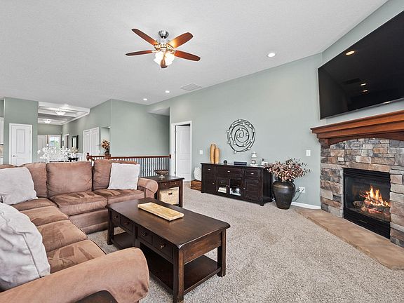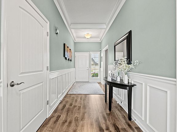Step inside this absolutely stunning single-story open concept floor plan with a fully finished daylight basement. Our viewers will quickly appreciate that this one-owner home has been well maintained both inside and outside. As you enter the home, you'll be captivated by the expansive 10' ceilings and the open foyer, which displays a gorgeous coffered ceiling and wainscoting detail along the foyer walls. The great room, kitchen, and dining room flow seamlessly together for ease of access and use. The heart of the great room is the fireplace, which features stone accents to the mantle, and the large glass windows that surround the space enhance the beauty of the home while providing an abundance of natural light, along with captivating water views. The kitchen is open to the dining and living room, and exhibits stunning painted white custom cabinetry, providing ample space for storage. The kitchen is anchored by a large island, and all kitchen tops are adorned with granite. The primary bedroom suite is generously sized and displays an added touch of sophistication with decorative crown molding. The adjoining spa-like bathroom features a double vanity with a granite top, private water room, a tile shower, a soaking tub, and an oversized walk-in closet. Bedrooms 2 and 3 are generously sized and contain a private full-size bathroom with a double vanity. As our viewers descend into the fully finished basement, they will appreciate the well-designed layout. There is a 4th bedroom in the basement that is currently used as an office, along with a full bathroom. Additionally, there is a family room, an exercise area, and a large entertainment room with a bar. This is the perfect area to relax and create long-lasting memories with your loved ones. Ascending back upstairs, our viewers can access the covered deck from the dining area. Here, you can enjoy the scenic water views under the shade or descend to the decorative oversized stamped patio where you can grill or relax in the sun. Just off the three-car garage is a large mudroom with a bench and lockers, as well as access to the laundry room. All kitchen appliances, including the washer and dryer, are included in the sale, however, they are not warranted. Owners will be taking the wine fridge in the basement bar and the freezer and fridge in the garage, along with the Ring and cameras. This immaculate home is located in Valencia and is close to shopping, entertainment, restaurants, and I-469.