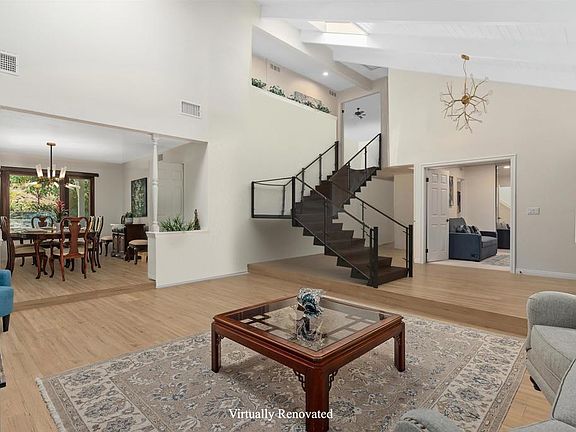 Only 3.5 miles to beach and Great Home with excellent schools near by. This exquisite property offers a perfect blend of luxury and comfort all set on a spacious 0.25 acre lot. Boasting 5 bedrooms and 3 bathrooms, 3,406 sq. ft., this tropical oasis is an entertainer's dream! As you step into the backyard, you'll be captivated by the stunning landscape, complete with a sparkling pool, spa, and soothing waterfalls. Entering through the double mahogany front doors, you'll find an array of impressive features including a convenient full bedroom and remodeled bathroom downstairs. Additionally, there's a separate entrance off the front of home leading to a private bonus room, perfect for accommodating guests, home office, gym and workout area or even multigenerational living Natural light fills the home, thanks to the 3 skylights. The kitchen is a chef's delight, remodeled with newer cabinetry, pull-out shelves, and exquisite Hawaiian Bordeaux granite countertops. The primary bedroom is a true sanctuary, featuring a fireplace and a beautifully remodeled en-suite bathroom with skylight. Also, enjoy a private balcony, providing a serene outdoor escape off one of the additional bedrooms. This home is equipped with several modern upgrades, including 30 owned solar panels, a newer water heater, upgraded pool pumps, and replaced air conditioning and furnace systems. With no HOA or Mello Roos, you have the freedom to enjoy your property. The location is highly desirable, nearby the excellent schools in the San Dieguito/ Encinitas school District, restaurants, Cinepolis and shops nearby and the Forum Shopping center too. Easily accessible to the 5 freeway and beaches! Don't miss this incredible opportunity to own a slice of paradise in Carlsbad. Schedule a viewing today and discover the perfect blend of luxury, convenience, and tranquility in this tropical retreat! Recent appraisal (9/18/23) is $1.890M. Seller wants home sold now!