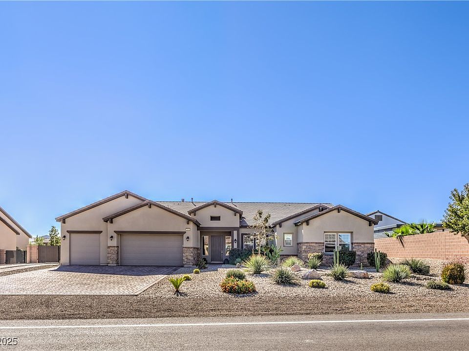 STUNNING LIKE NEW SINGLE STORY SALT-WATER POOL home just outside MOUNTAIN'S EDGE on just under 1/2 acre lot~RURAL FEEL while close to the city~THREE CAR garage with pavers and RV GATE~home has a WIDE OPEN FEEL inside and out~three panel SLIDER WALL in GREAT ROOM~custom STACKED STONE gas fireplace~PRIMARY SUITE includes being separate from other bedrooms~EN SUITE bedroom brings a bath for each bedroom~DEN area can be utilized as FORMAL DINING~BACKYARD OASIS with gorgeous heated pool/spa, covered patio and covered BBQ area~MATURE easy landscape with synthetic grass~THIS HOME IS SPOTLESS, hurry call your agent! NOTE:CONVECTION REFERS TO MICROWAVE, NOT OVEN