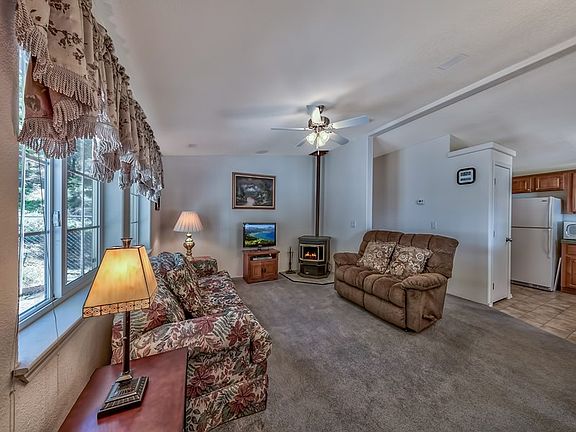 Drive up to this lovely retreat and immediately feel at home! This meticulously maintained and upgraded manufactured home is situated on .60 acres and within walking distance of Lake Davis. To warm you, the home offers a pellet stove as well as forced air heat. On those warm summer days, the air conditioning as well as whole house vent will keep you cool. There are 2 bedrooms, 2 bathrooms, 2 car garage (constructed in 2008), surround sound, tank-less water heater and all interior furnishings as well as patio furniture stay with the house to make it an easy transition for you. The roof and siding on the home was replaced just 5 years ago and the two RV spaces include their own clean outs & water hydrants. This is a great set up for you and your entire family. Let the vacations begin!!