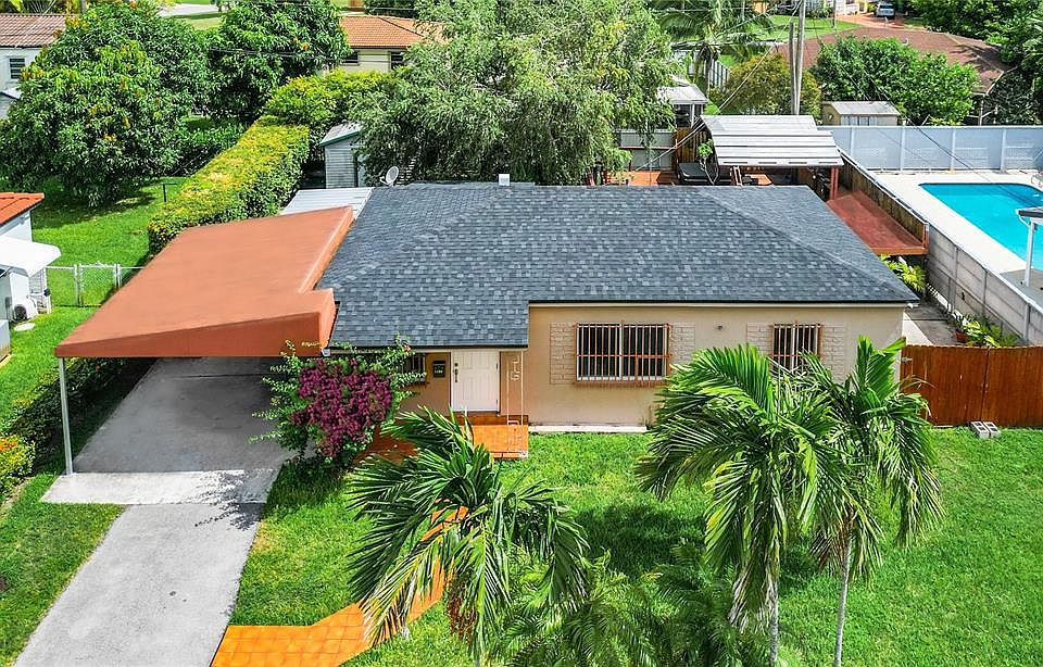 Reduced! Three bedroom starter home in desirable "Waterways". Remodeled bathroom & kitchen with granite counters, wood cabinets, & stainless appliances with LG French door refrigerator. New shingle roof Nov 2022, impact resistant front door 2022, impact resistant back door, central AC unit replaced 2017, crown molding, tile floors, 4 ceiling fans, window treatments, utility room with washer & dryer & more. Beautifully landscaped front yard with palm trees and bougainvillea, private fenced back yard with big gazebo, deck & spa--ideal for entertaining and BBQs. Plus--two sheds, a carport, & double gate with pavement behind fence line for possible RV/boat parking. Very close to Central Lake, AD Barnes Park, schools, shopping, Palmetto Expwy (826).