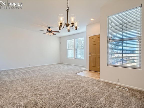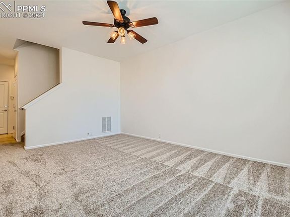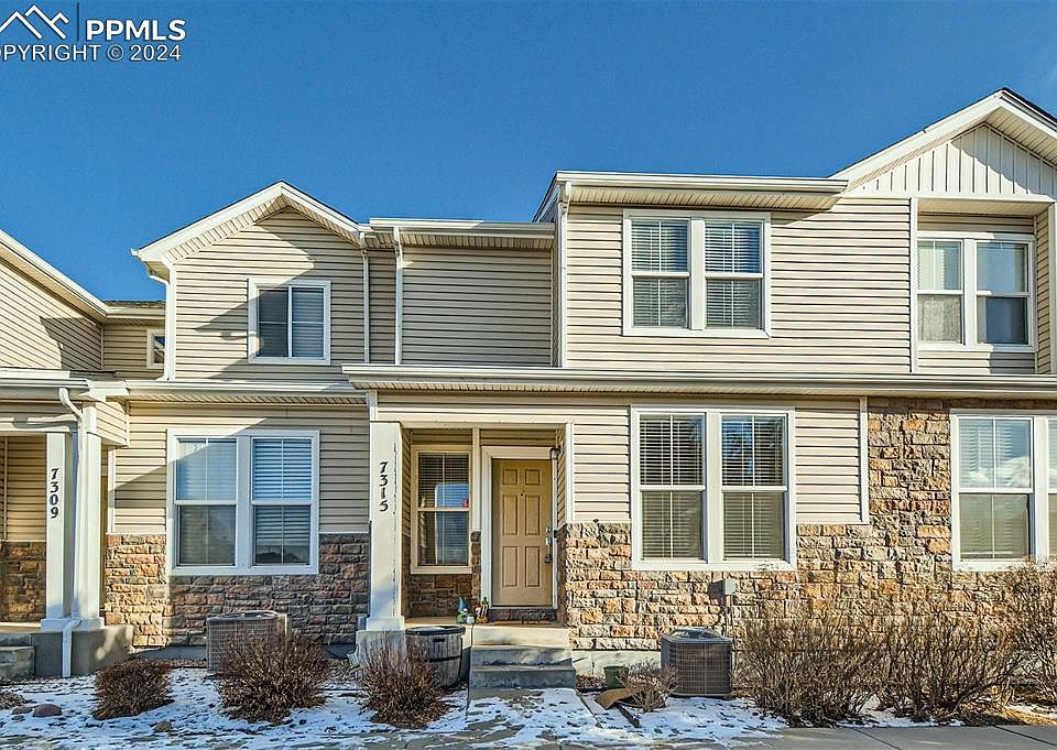 Welcome to this beautifully updated two-story townhome that faces open space and has mountain views! It's conveniently located near military installations! This home has new paint and carpet throughout the home, as well as refinished hardwood floors! The layout is an open concept floor plan with the family room, dining room and kitchen in one main area, along with a powder room and plenty of storage! On this level you will also be able to access your private 2 car garage! Upstairs on the second level you'll find a huge primary bedroom with vaulted ceilings, as well as gorgeous mountain views from the large picture windows. It has French doors at the entry, a large walk-in closet, and an attached 5-piece bathroom with dual sinks! There are also 2 large bedrooms on this level, as well as another full bathroom. Lastly, on this level you will find the large laundry room which comes with a washer and dryer to make doing laundry a breeze! There are trials right outside your front door, as well as parks that are close by. There's a ton of shops and restaurants in the general area and it's conveniently located close to I-25. Contact the listing agent!