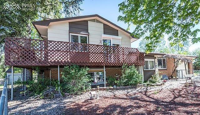 Great 4 bed 3 bath property located in Fountain. This home sits on a large lot at the end of a cul-de-sac, with lots of trees, a huge back yard with a fenced in garden area and greenhouse. The wrap around deck features private entrances from the master bedroom and the 2nd bedroom. Two large living rooms, one with a wood burning fireplace. Large sun room off the kitchen and dinning room. Newer windows throughout the home. All windows have an exterior rolling shutter for room darkening and added security. Possible RV parking Close to Fort Carson, I25, shopping, schools and parks. This is a must see!!