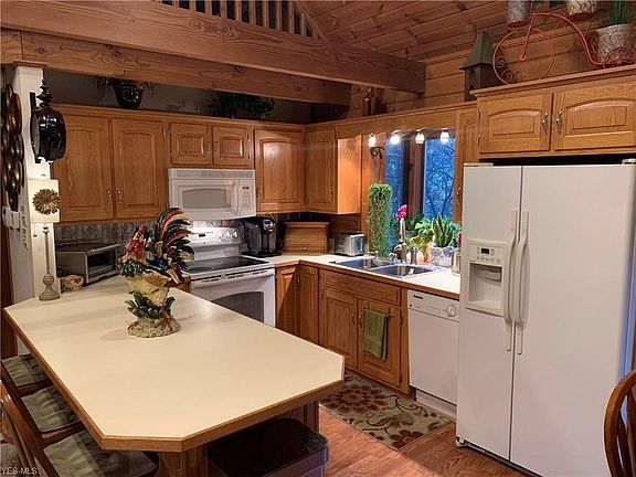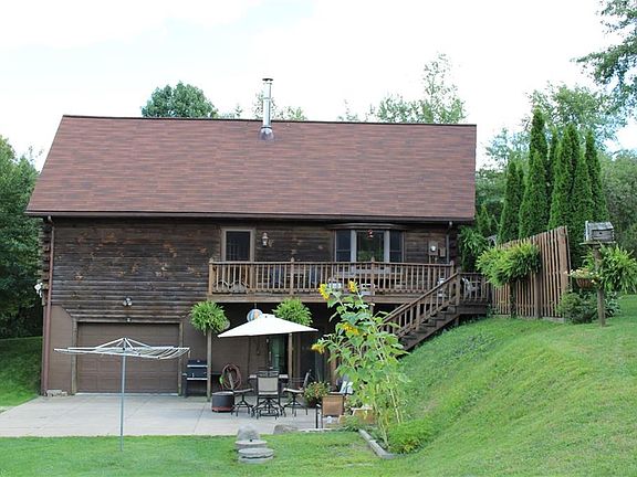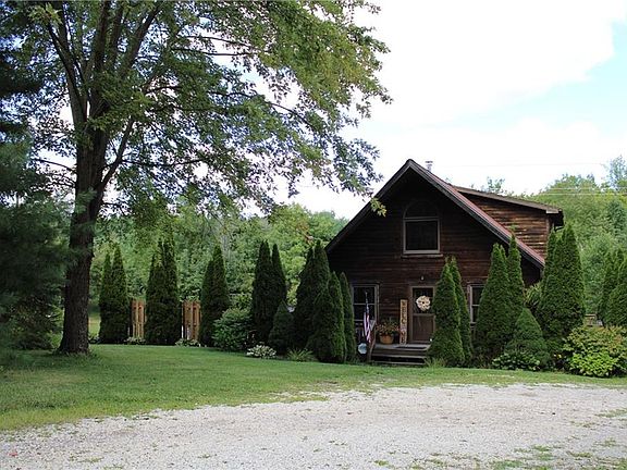 Welcome home to this well maintained one of a kind log home on over two acres. The first floor features vaulted wood ceilings with wood beams. The living area has an open floor plan and a wood burning stove that adds warmth to this already charming home. The kitchen features solid oak cabinets that's open to the living area. There are two generous size bedrooms on the first floor along with a full bath. The second level offers a loft that overlooks the first floor living area and a master suite with a walk-in closet and a full bath. The lower level features a partially finished basement that features a full bath and walks out to a large patio perfect for entertaining. There is a wrap around porch that overlooks the beautiful property. The grounds include an above ground pool, a shed and a one car attached garage. Make an appointment today before this home is gone!!