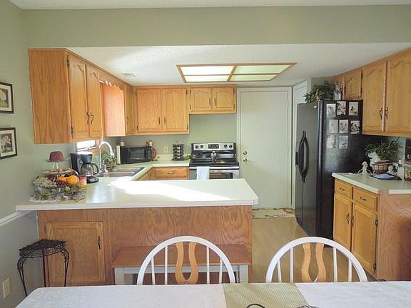1448 sq. foot 3 bedroom, 2 bath ranch in Wedgewood addition, wooded fenced lot across from park on dead end cul-de-sac street. New electric flat top range, side by side refrigerator, breakfast bar, and laminate flooring. Eat-in dining room w/ bay window, great room features cathedral ceiling with gas log fireplace and french doors. Ceramic floor in entry foyer. Newer paint and carpet. Master bedroom suite with full bath and walk-in closet. Move in condition!