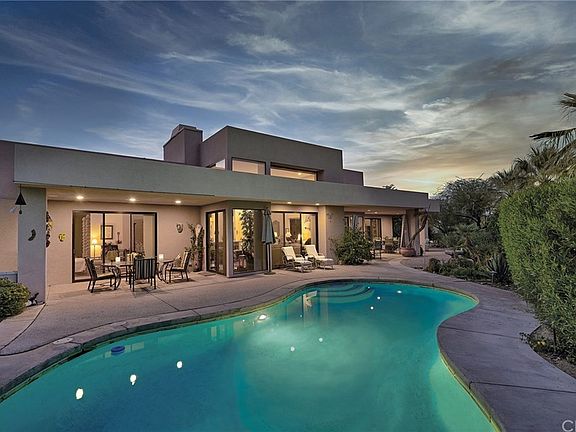 Unique estate home in the gated community of Ironwood, on a secluded & very private .46 acres, featuring mountain vistas from most rooms. Welcoming entry foyer, open floor design & split bedroom plan for privacy. Elegant formal living room, separate formal dining room, Chef's gourmet kitchen with updated quartz countertops, top of the line stainless steel appliances, wine chiller, ice maker & large center island w/additional sink. Eat at counter opens to the family room w/fireplace, built-in entertainment center & an open wet bar between the living & family rooms. Soaring ceilings, fans in all bedrooms, stone tile floors, wired for sound, numerous upgrades, custom built-ins & architectural features. Secluded master suite with built-in TV center, access to the pool & spa, luxurious bath with large walk-in shower, separate spa tub, private water closet & bidet, and a large walk-in closet beyond. 2 guest bedrooms suites w/walk-in showers, one w/northern lighting for artists, & PLUS A CUSTOM OFFICE with built-ins. A huge laundry room w/additional storage closet space, leads out to the finished attached garages for 2 cars & room for 2 golf carts. Professionally landscaped yard, small citrus orchard with lemon, lime, grapefruit, & fig trees, private pool and spa w/waterfall feature, multiple covered outdoor dining patios & built-in BBQ center. Additional yard space for 125 foot LGB train town. Access to this property is down a long private driveway, in the exclusive Ironwood IX.