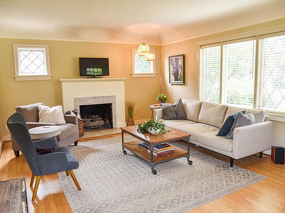 Beautiful Ravenna Tudor on a large lot has delightful details and comfortable spaces. Main floor features fireplace, dining area, hardwood floors, stained glass & coved ceilings, and well-lit office. Large upstairs bonus room & nook make the perfect lounge or work space. Huge deck is set up for grill and entertaining. Street parking out front with easy access can support multiple vehicles. Gas furnace on main floor, baseboard heating upstairs. Prime location near future Roosevelt light rail station, bus lines, easiest of commutes and close to Whole Foods, Third Place Books, U Village, UW, Seattle Children's Hospital, numerous parks & playfields. Fully furnished home with spacious yard and highly walkable neighborhood.