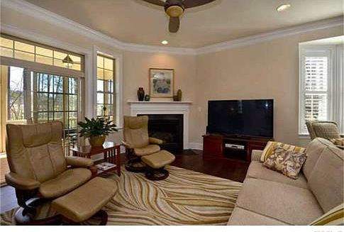 Fabulous stone front villa home on the Tom Fazio designed golf course in Hasentree. Beautiful hardwood flooring on the first level. The open floor plan lets lots of light into the home The kitchen is appointed with granite countertops, stainless steel appliances, center island and a tile backsplash. There is a relaxing sunroom off the living room with a cozy gas log fireplace. The first floor master suite suite has a trey ceiling in the bedroom. There is also a first floor guest bedroom. More living space is to be found on the second floor with a loft style bonus room. Take a look today.