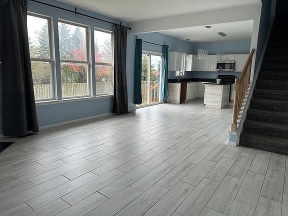 9 foot ceilings, create a grand open feeling as you look out through the large windows over in nature filled view. The tiled flooring throughout the first floor add to the spaciousness. Granite kitchen countertops, add to the grand feeling of this charming home!