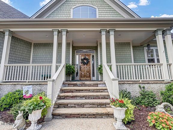 An Absolutely Stunning 5 Bedroom, 4 ½ Bath Creekside Estate Home featuring Wood Shake Siding with Stone accents as you approach from the large aggregate drive and ample off-street parking for many guests. A Welcoming Hickory entry door leads you through foyer with soaring ceilings and chandelier to an open living space with a breathtaking Creek/Marsh Front Canvas as a background.