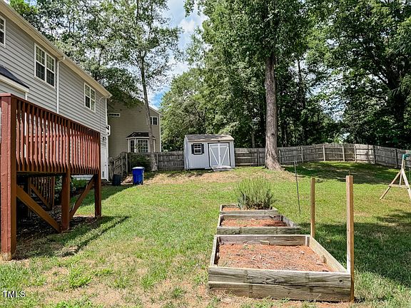 BACK YARD paradise with 6 foot privacy fence and GORGEOUS house with over 2100 sq ft less than 2 miles from 540. NEW interior paint, stunning Acacia Engineered HW floors throughout first floor, SELLER OFFER $5000 in carpet allowance. Eat in Kitchen AND formal dining room, NEW HVAC 1st floor 2018 NEW HVAC 2nd floor 2019, NEW water heater 2022, NEW roof 2016, Kitchen remodel 2020 including granite counter top, soft close kitchen cabinets and subway tile backsplash. Stainless steel appliances, KitchenAid dishwasher, HUGE bonus room with digital projector and 110'' projection screen and surround sound speakers, wired work area in garage, back door entry to garage for easy access to backyard, parking pad beside garage for easy parking, 12 x 12 deck, 6 ft privacy fence around spacious private back yard with 10 x 12 storage building and playset Easy access to Neuse River Greenway, Wake Tech and much more!! WAY too much to list. DEFINITE must see.
