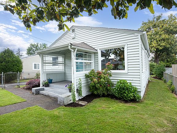 This darling in Darlington lives large. Cute as a button, this 2 bed,1 bath bungalow puts the FUN in functional layout w/open concept featuring immaculate oak floors, updated bathroom and kitchen w/SS appliances, butcher blk counters and eat-in bar. Relax and enjoy the spacious and peaceful backyard; fully fenced w/raised beds, potting shed & mature landscaping. New mini-split system, newer electrical and plumbing, new garage door. Close to schools, parks; minutes to Woodstock dining & shops. [Home Energy Score = 6. HES Report at https://rpt.greenbuildingregistry.com/hes/OR10202916]