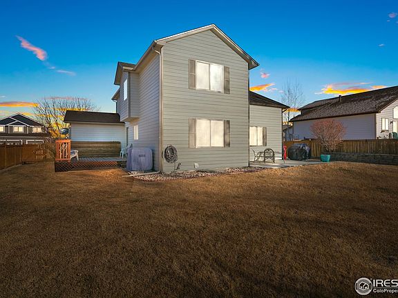 Great West Greeley Home on large lot neighboring a community park. This beautiful home includes vaulted ceilings, gas fireplace, hot tub hookups, finished basement, insulated 3 car garage, shed w/ power, full landscape and sprinkled yard, garden beds, jetted tub, Newer furnace, AC, humidifier, and roof. Enjoy entertaining guests inside in the open areas or outside on the deck, patio, or around the fire pit. The tiled kitchen and dining area are complete w/ full back-splash and all appliances.