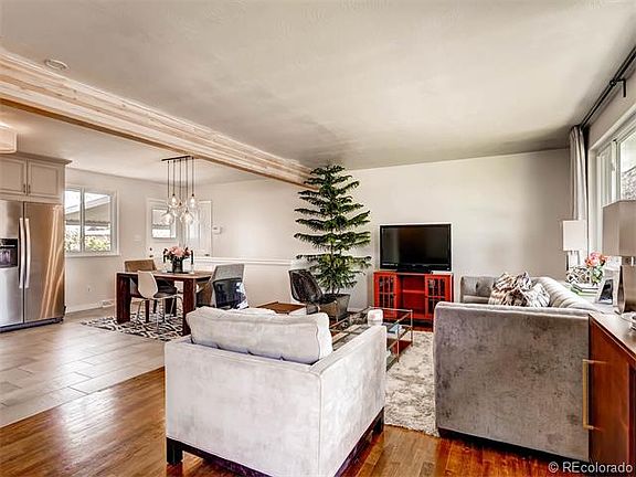 Beautifully remodeled ranch in quiet neighborhood but close it all. This home boasts an open floor concept and beautiful hardwood floors. The kitchen features new higher end whirlpool stainless steel appliances, soft close cabinets with crown molding and under cabinet lighting, marble back splash, white quartz counter tops, and tile flooring. Enjoy summer evenings in the large backyard with a covered patio and new sprinkler system. Patio furniture and curtains are included. Newer roof and windows. Nest thermostat, new paint throughout. New Samsung washer and dryer included. One mile to Whole Foods and Belmar shopping. Heritage park 1/4 mile away and only 15 minutes to Cherry Creek. This home has it all!