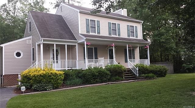 Hurry and visit this 3 bedroom, 2.5 bath Colonial situated on a huge level lot with a large fenced backyard. This home features a formal dining room, formal living room with fireplace and a family room. The spacious eat-in kitchen was recently updated to include appliances. Additionally, the carpet was recently updated along with the two upstairs bathrooms. The second level includes a nice sized master bedroom, huge walk-in closet as well as a master bathroom. You will also find two additional bedrooms upstairs with another bathroom. The exterior offers maintenance free vinyl siding, paved driveway, tiered deck for outside entertainment and a full length country porch. This beauty is conveniently located to all major highways, minutes from 288, Chippenham and I95. Seller is the listing agent/owner.