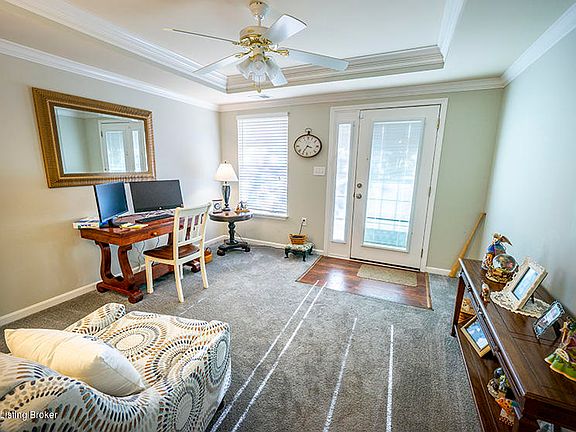 Cozy, welcoming and available just in time for the holidays, this home is the perfect gift for that picky home buyer! Come and fall in love with this 2BR/1.5BA patio home in the Fox Hollow subdivision that comes complete with features you've been dreaming of - like a quaint, outdoor patio with privacy fencing and green space beyond, a den with two walls of windows (perfect for a home office or gym!), a formal living room with trey ceilings, and an open, eat-in kitchen. Updates include new LVT flooring, storm doors, and water heater and this home also includes a private garage (not all units have one!) PLUS additional parking and extra storage in the attic! With easy access to the Gene Snyder and shopping, make this holiday one to remember!
