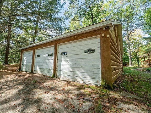 Attention Cash Investors! This private, Perma Log cabin is a blank slate for you to put back together. 1200 sq.ft. stripped down to the studs, its currently framed for two beds and one bath with a living room and kitchen on the main floor. There is a full basement as well to finish or leave it as is for storage. The property sits on eight lots that equal over an acre of land and borders the Pine River and is steps away from Van Ettan Lake. Other features include: wood stove, Perma Log detached garage with a loft, a 40 x 30 Pole barn, and a large fenced in yard.