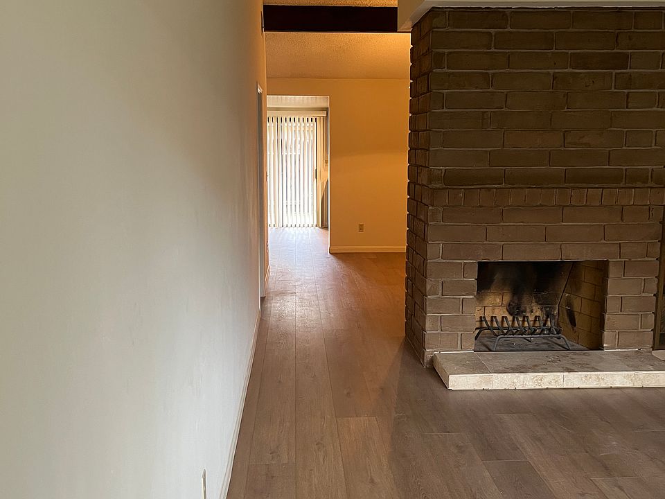 All new floors and paint. Vaulted ceilings in living and dining rooms. Fireplace, washer/dryer alcove off kitchen, double garage, private patio. Across the street from Quailwood Park. One year lease. Owner pays for water, garbage, gardener, pest control. Tenant pays for gas and electric. NO SMOKING.