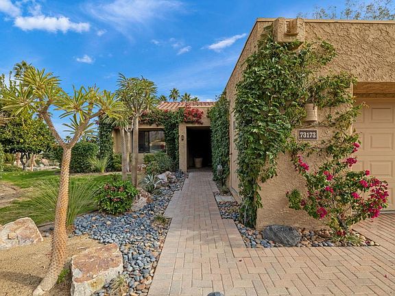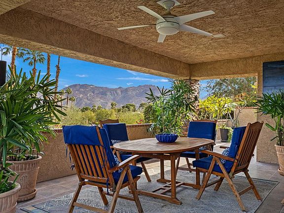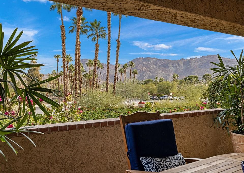 If you are looking for a home that is ugraded and expanded, this may be the right place for you.. It is situated on a serene greenbelt area with views of the surrounding mountains. Offered furnished per inventory list. The kitchen has been expanded to create a generous casual eating area and also offers different views. The gleaming stainless steel appliances, refigerator, dishwasher and microwave are recent upgrades The gas cooktop is also a recent improvement.. European style kichen cabinets and granite counter tops complete this delightful space. The guest bedroom has unique luxury German laminate flooring and a walk in closet. The dining area features an artistic designer light fixture, The ''dry'' bar had a sink that has been removed but all the plumbing is still there. You will find a peaceful Zen garden in the atrium off the den. The den has a closeet and is very versatile and offers many possiblilities. The main bedroom has been expanded and the main bath has been completely redesigned and remodeled. Don't miss the built-in medicine cabinets hidden behind the mirrors. Another unique feature is the extensive, wrap-around patio. There is a gas connection for the BBQ. This is truly an exceptional home that has been updated.