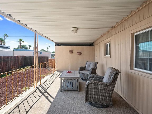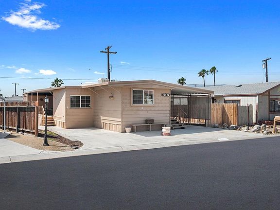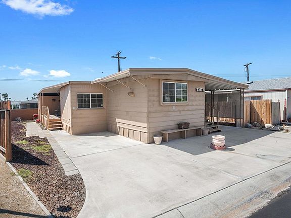 A GOLFER'S PARADISE! This home is located in one of the best kept secrets in the desert; Tri-Palm Estates and C.C. in Thousand Palms. This 1979 2-bedroom 1 bath 803 sq ft home has a fresh April 2023 remodel with new flooring, washer/dryer, security system and a large Tuff Shed on premises. Low maintenance landscaping with a sensational mountain view of Big Bear & San Jacinto Mountains from the kitchen window and patio. Low HOA fees allow 2 owners on the deed for golf on the 2 gorgeous par 3 and 18 hole golf courses. Tennis, Pickleball courts, shuffleboard, club house, 2 pools and hot tubs, RV Storage and more. Close to Costco, Sam's Club, Walmart, Lowes, Home Depot, Theaters, and many fine restaurants.As good as desert living gets within this highly desirable 55+ community!