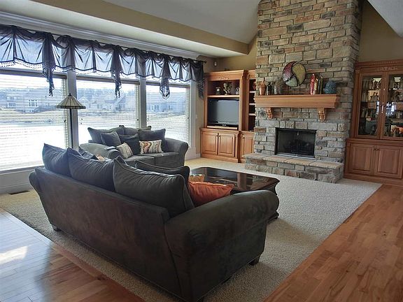 Great curb appeal with stone accents on front; Landscaped; Water front to left side & back yard; Wood floor in foyer, hallway, kitchen, & BKF; Inverted trey ceiling in DR; Cathedral ceiling in great room with ceiling fan & built-in poplar cabinets by stone fireplace (gas log); White painted woodwork - fluted pillars in Dr; Wood blinds; Maple Zehrs antique cabinets in kitchen & 2.5 bath; Large kitchen sink; Include 5 burner gas range & oven, microwave, DW, & refrig; Tile floor in laundry - gas & electric hook up; Main floor MBR with trey ceil; MBA - Kohler jet garden tub, shower, 2 sinks; Closet concepts; 3 BRs up - one with cath ceil; Walk in closet; Daylight lower level - rec room & exercise room - laminate floor & half bath; cubbies; 3 car gar; Sound system in GR, Kit, & MBA - wired by deck