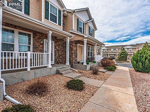 Welcome to this well-maintained 2-bedroom, 3-bathroom townhome in the quiet and centrally located Countryside Grove community in Fountain! Enjoy stunning Pikes Peak views from your covered front porch. This move-in ready home offers an open and functional layout with thoughtful updates throughout. The main level features a spacious living room, half bath, and a beautifully updated kitchen with tile backsplash, ample cabinet space, center island, and adjacent dining area. The built-in hutch adds extra storage and charm, perfect for displaying your favorite pieces. Step outside to the rear of the home for easy grilling or enjoying fresh air. Upstairs, you’ll find two large bedrooms, each with its own private bathroom and closet. The west-facing suite provides gorgeous mountain views and a peaceful retreat. The laundry room is conveniently located upstairs, and the washer and dryer are included. Other highlights include low-maintenance living with easy access to amenities, close to schools, shopping, Fort Carson, Peterson AFB & Metcalfe Park. This townhome offers comfort, views, and location—everything you need for Colorado living! Don’t miss your chance to call this one home.