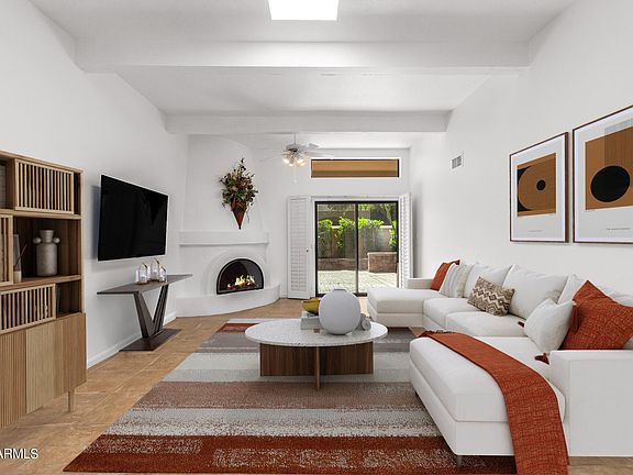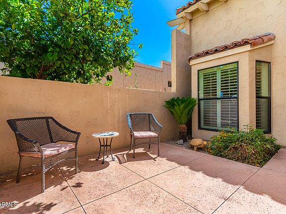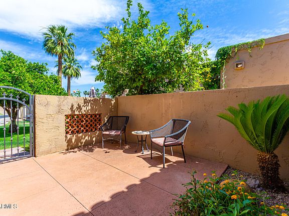 Beautifully remodeled two bedroom, two bath Villa Palo Verde Townhome w/ den. Kitchen has high- end cabinets, appliances, and cozy breakfast area The great room is light and airy w/ fireplace and skylights. Lovely primary bedroom, ensuite bath is spacious w/ walk-in closet Front courtyard and nice size back patio professionally designed and landscaped. High-grade security system and other amenities in documents. Perfectly located in the heart of Scottsdale. This townhome is walking distance to Scottsdale's best restaurants and shopping. Steps from hiking, biking, and running trails along the Greenbelt or Canal. Camelback Mountain is a couple of blocks out the door. Fifteen minutes to the airport and five minutes to the 101 Freeway. A perfect home for professionals or winter visitors