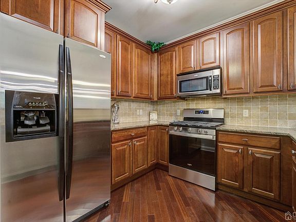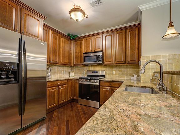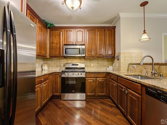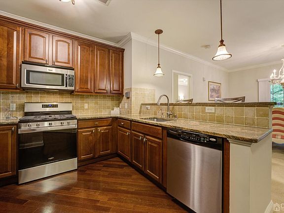 Immaculate, move-in ready, luxury condo filled with tons of natural light and upgrades. Lavish model that boasts large, grandeur, two-story great room surrounded by tall walls of windows and completed with an, elegant chandelier, and custom lighting within the ceiling's cove molding. Gourmet kitchen with premium cabinetry, granite countertops, breakfast bar, and a full stainless steel appliance package is perfect for entertaining with it's open concept to the dining and living room. Included in the stainless package is a brand new, 5 burner, self cleaning, fan convection cooking, gas range with built-in air fryer, surely to please all of your cooking needs. Gleaming hardwood floors complete the lavish kitchen and entryway. The dining room is brightly lit day and night with its elegant chandelier and the abundance of natural light coming in from the slider that opens to a balcony facing the woods. The beautiful master suite also includes a wall of windows, a customized WIC with pull out drawers and organizers, a separate linen closet and recessed lighting. The master en suite includes a soaking tub, shower stall and a double vanity with granite countertops. This exquisite unit offers an additional full bathroom and bedroom/den, or office located down the hall, on the opposite side of the main living space, providing a peaceful, private retreat. The second bedroom is generously sized with another wall of windows and a WIC, also with a custom organization system to maximize all of your storage needs. You will appreciate the extra storage offered by the pantry closet, an attached, larger, one car garage with storage that has direct access from the unit building. Additionally, you will have not one, but two additional storage rooms also located within the building on the first floor. Luxury living in a resort like community that includes a stately clubhouse, grand outdoor swimming pool, and gym. The community is beautifully landscaped and very well maintained. Inside each building is a game/card room, a library/lounge/social room, and an elevator for your convenience to this 3rd floor unit. Brand new heating and air conditioning system installed 9/23. Close to stores, restaurants and highways for an easy commute. Welcome home!