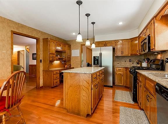 Welcome to this well maintained 1.5 story home in a quiet, established neighborhood. So much space between 4 bedrooms, 2 family room areas, a large living room and deep 2-car garage on a 1/4-acre + lot! You’ll feel right at home in the eat-in kitchen with center island, pantry, s/s appliances, granite countertops and plenty of cabinets, with easy access to beautiful pergola-covered deck. Spacious family room with built-ins and a cozy working fireplace perfect for a fall afternoon around the tv! Dedicated dining room and a light-filled living room offer additional spaces for your entertaining needs. You will LOVE the main level primary suite featuring double-vanity, tub, shower and a large walk-in closet. Bedroom 2 (currently used as craft room), an oversized powder room and laundry room (yes, a laundry room!) complete the first level. Upstairs offers Bedrooms 3 and 4 connected by large full bathroom and storage closet. Finished lower level with sizeable second family room, half bath and two storage areas. Garage is large with built-in storage unit and workbench ready for your DIY enthusiast! Recent updates include fresh paint throughout most of home, deck was stained last Fall and entry railing is new as of this week!