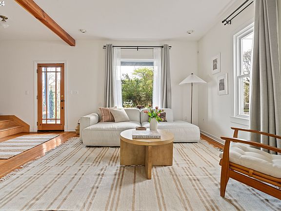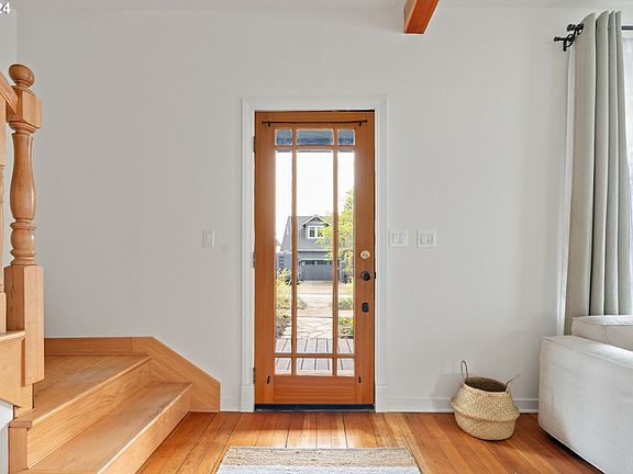 Welcome to the Farmhouse Revival nestled in Cathedral Park. This charming farmhouse underwent a remarkable transformation, with its back-half completely rebuilt in 2007. While offering modern comforts like a new furnace, heat pump for cooling, and heated kitchen floors, it retains its original allure with hardwood floors, 9' ceilings, and fir interior doors. The kitchen steals the show with its vaulted ceilings and skylights. A pass-through to the dining area creates a generous space perfect for both cooking and entertaining. Off the back door, you'll find a covered patio with access to the garage. The garage boasts 2 overhead garage doors, making plenty of space for hobbies. Marvel at the four-season garden that is just now waking up. Enjoy the peaceful shady backyard in summer. Blocks to Downtown St Johns, the Beer Porch food cart pod, New Seasons, Cathedral Park, and schools. Minutes to Forest Park, University of Portland, Adidas, and much more!